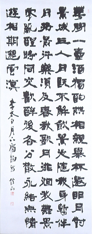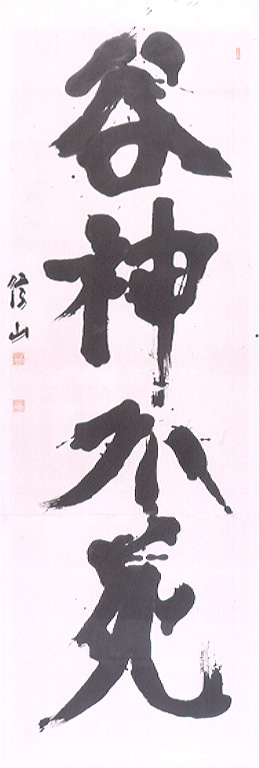 コレクション展示 終了しました 天命を知る 2025年8月5日(火) – 11月3日(月祝) Tuesday, August 5th, 2025 – Monday, public holiday, November 3rd, 2025 上條信山記念展示室 「天命を知る」とは、中国の思想家・孔子の言葉で、50歳で自身の使命を悟ることをあらわします。上條信山が代名詞ともいえる大字作品を発表し始めたのは50歳を過ぎてからのことでした。60歳頃からは隷書や篆書の大字作品にも挑戦しています。 今回の展示では、上條信山50~60歳代の書を中心にご紹介します。50歳代の代表作《谷神不死》、60歳代の《堅勁》など、師風からの脱却と、より自分らしい表現を模索した年代の数々。筆線に魂をのせ、新たな表現を追求し続けた創作の軌跡をご覧ください。 作品リスト 《堅勁》1969年《堅勁》1969年 《金石之交》1971年《金石之交》1971年 《谷神不死》1962年《谷神不死》1962年 《李太白詩「月下獨酌」》1957年《李太白詩「月下獨酌」》1957年