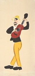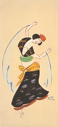 コレクション展示 終了しました 小川千甕 《西洋風俗新大津絵》 2025年8月5日(火) – 11月3日(月祝) Tuesday, August 5th, 2025 – Monday, public holiday, November 3rd, 2025 池上百竹亭コレクション展示室 小川千甕《西洋風俗新大津絵「倫敦塔の番人」》 池上百竹亭コレクションは、松本市の文人・池上喜作(号・百竹亭、1890-1978)が蒐集した近代文芸資料を主とする221点からなるコレクションです。今回は、小川千甕(おがわせんよう)の作品《西洋風俗新大津絵》を中心にご紹介します。 小川千甕(1882-1971)は、仏画師(ぶつがし)・洋画家・日本画家・漫画家として、明治末期から昭和期にかけて活躍しました。京都に生まれ、はじめ仏画師の徒弟となりますが、1902年からは浅井忠に洋画を学びつつ、日本画にも取り組みます。1910年に東京へ移り、雑誌『ホトトギス』『太陽』などに挿絵、漫画を発表して人気を博しました。その後、本格的な日本画家として活動し、晩年には南画(文人画)に専念しています。 千甕は1913年に、フランスやイギリス、ドイツ、オランダ、イタリアなどを外遊しました。帰国後、滞欧中に見た風俗から主題を選んで描いた作品が《西洋風俗新大津絵》です。「大津絵」とは、江戸時代に滋賀県の大津あたりで売られていた民画のこと。千甕は、木版に手彩色し、20枚一組で制作しました。 自由自在でユーモアのある作品を、各図に添えられた千甕による解説と共にお楽しみください。 作品リスト 小川千甕《西洋風俗新大津絵「倫敦塔の番人」》小川千甕《西洋風俗新大津絵「倫敦塔の番人」》 小川千甕《西洋風俗新大津絵「さすらひの楽師」》小川千甕《西洋風俗新大津絵「さすらひの楽師」》 小川千甕《西洋風俗新大津絵「ダンスの女」》小川千甕《西洋風俗新大津絵「ダンスの女」》